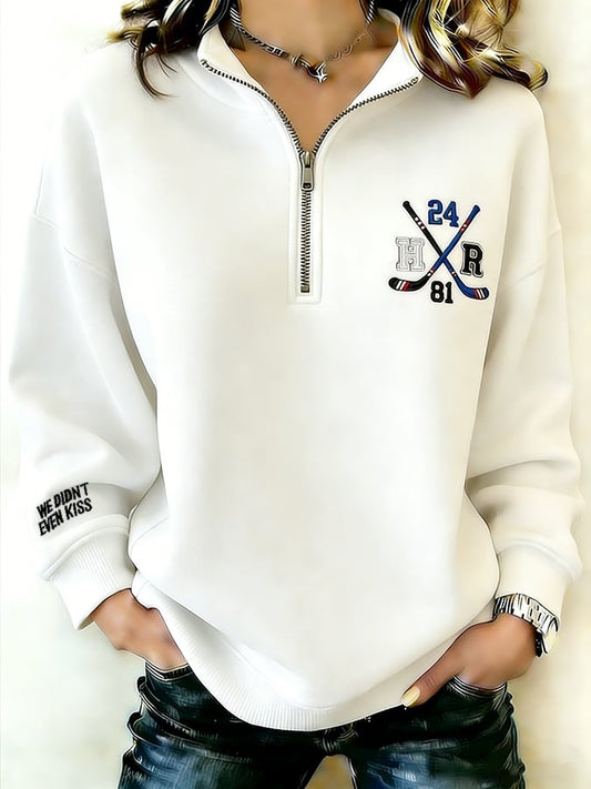 Women's Retro Ice Hockey Casual Print Sweatshirt