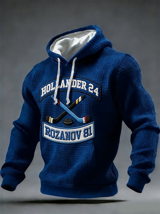 Men's Vintage Romantic Ice Hockey Print Hoodie