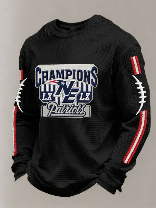 🏈Men’s Football Graphic Waffle Knit Long Sleeve Crewneck T-Shirt