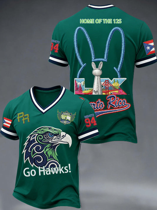 Men's Rugby Pattern Short-Sleeved T-Shirt V-neck